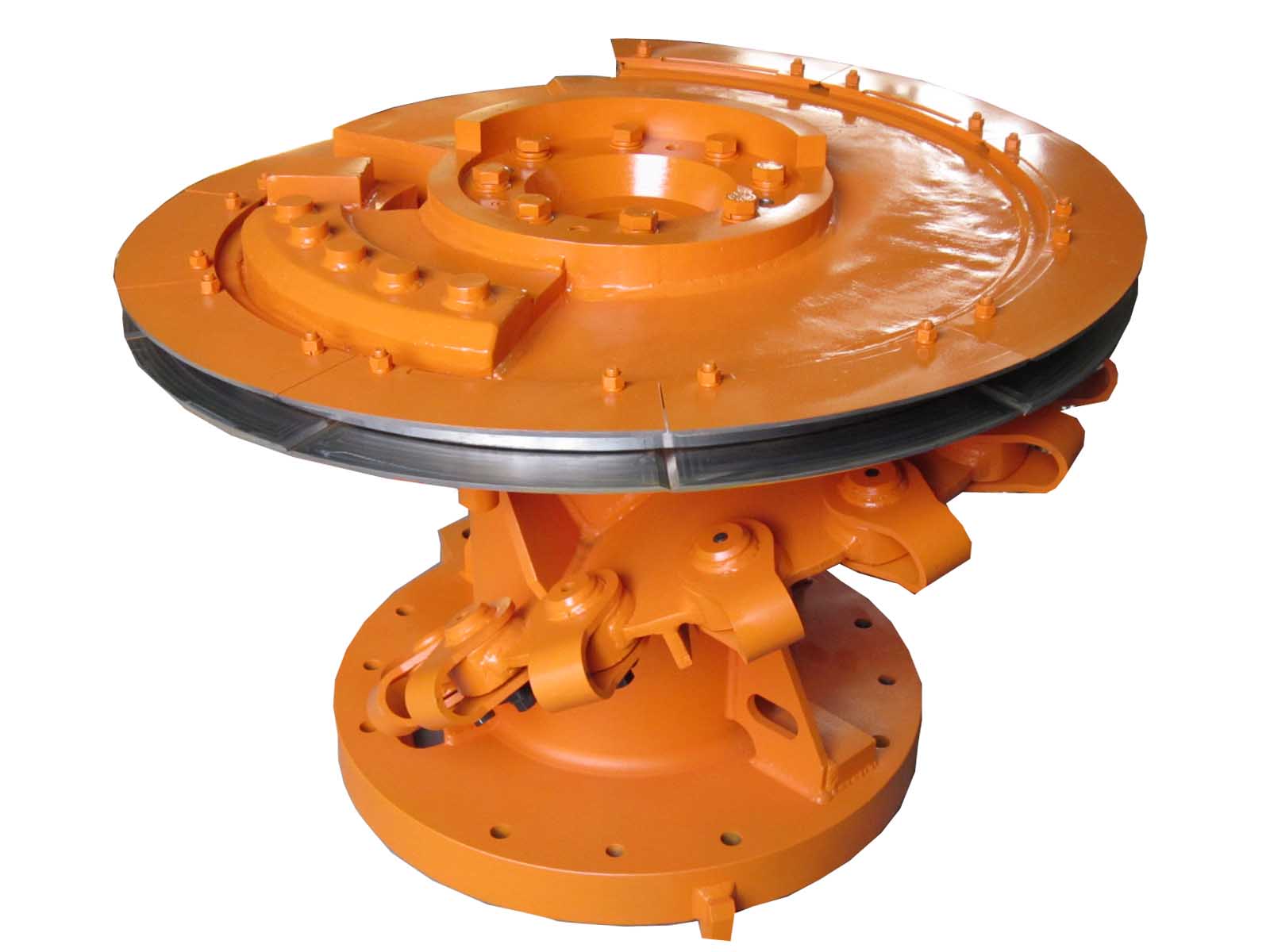 高線吐絲機為臥式結(jié)構(gòu),位于精軋機后控制冷卻線的水冷箱與冷控輥道之間。吐絲機由傳動裝置、空心軸、吐絲盤、吐絲管、錐齒輪等零部件組成。吐絲機由一臺電機驅(qū)動,通過齒輪箱內(nèi)一對錐齒輪嚙合帶動空心軸旋轉(zhuǎn),吐絲管安裝在吐絲盤上,吐絲盤與空心軸通過螺栓連接。吐絲機吐絲過程分析,吐絲機工作時,通過吐絲機前的夾送輥由吐絲機入口導(dǎo)管送入吐絲機的空心軸內(nèi),空心軸帶動吐絲盤和吐絲管一同旋轉(zhuǎn),使進入空心軸內(nèi)的線材通過旋轉(zhuǎn)的吐絲管沿著吐絲管出口圓周切線方向吐出線圈,并平穩(wěn)的傾倒在風(fēng)冷輥道上,形成連續(xù)不斷的線圈。線材通過高速...