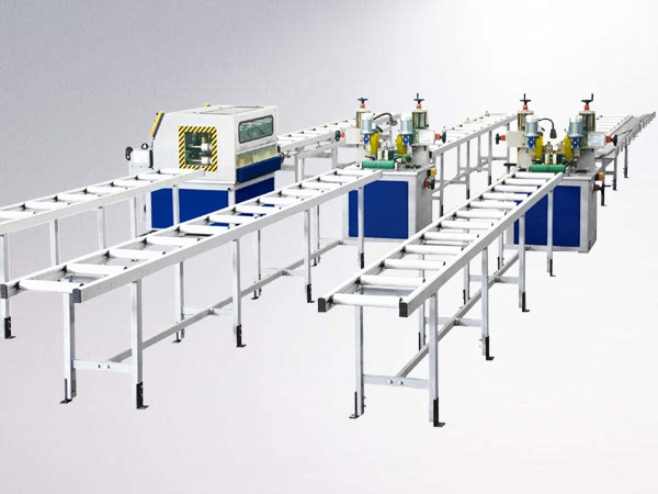 1、開齒穿條在同一臺設(shè)備一步完成,可以用兩臺開齒穿條機實現(xiàn)兩組鋁型材的組合;